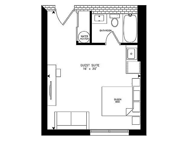 Located on the lower-level, is the buildings guest suite, to be made available to visitors. A small but welcoming studio suite, with natural light windows, granite counter-tops, custom trim, exposed brick, original ceiling tiles and brand new hardwood floors. Available to be rented by the day.