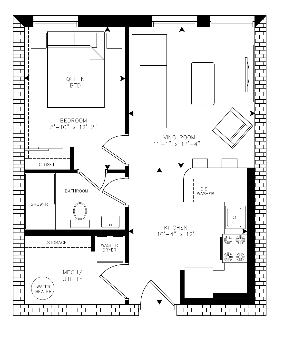 Located on the lower-level, this suite is stunning, with natural light windows, granite counter-tops, custom trim, exposed brick, and brand new hardwood floors.